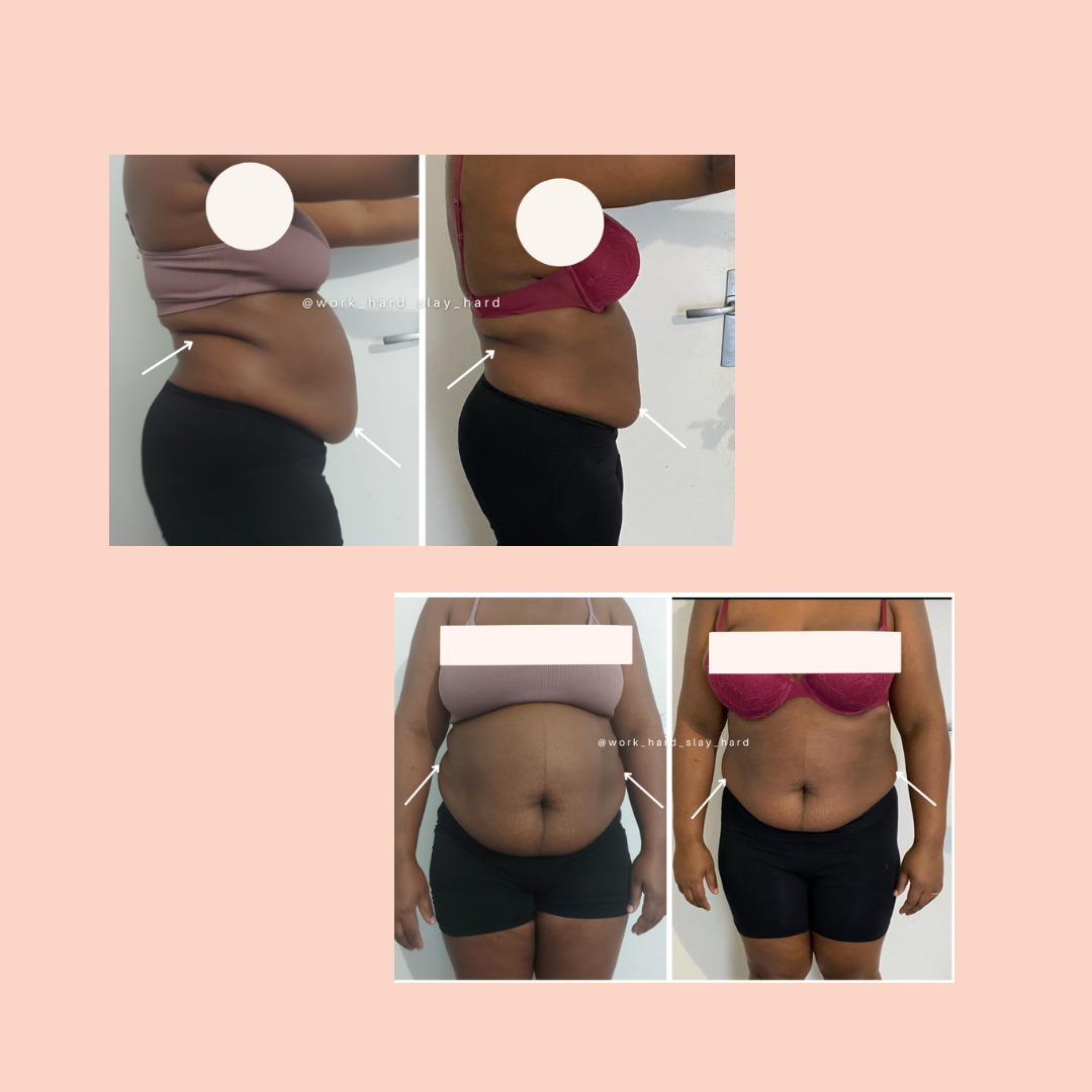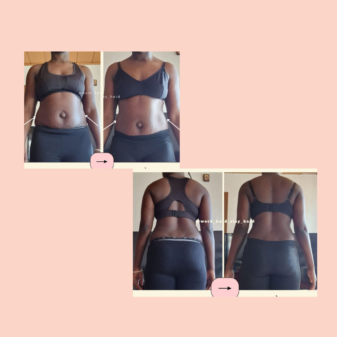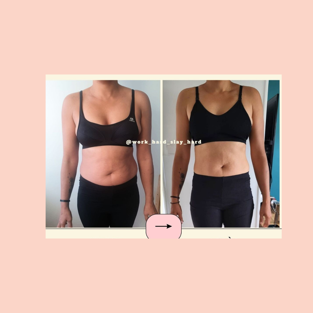 Puis elle a essayé mes séances maison. Elle a commencé à bouger avec plaisir et a vu son ventre et son corps se transformer, juste avec 2 bouteilles d’eau et un plan clair!